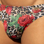 Dive into audacious style with the ES Collection Buns & Roses Bikini Brief in Black. This bold piece showcases a vibrant animal print with soft rose motifs and shimmering gold dots for a dazzling look. Made from recycled materials, it flatters and enhances your form, ensuring you're eco-chic whilst showing off your assets.
