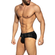 Slip into something undeniably captivating with the ES Collection See Through Flowers Brief in Black. These sultry undies feature an enchanting semi-transparent fabric adorned with a lovely flower motif. Designed with a super-stretchy waistband and ample front pouch, they're both comfortable and irresistible.